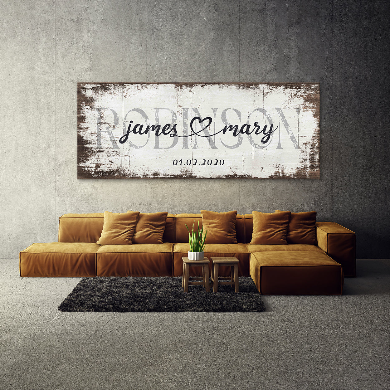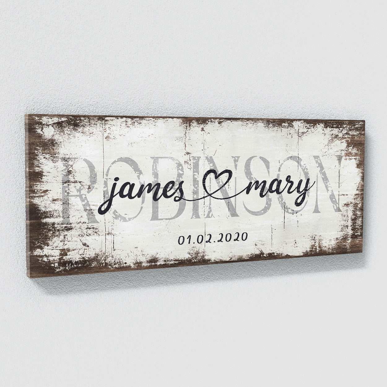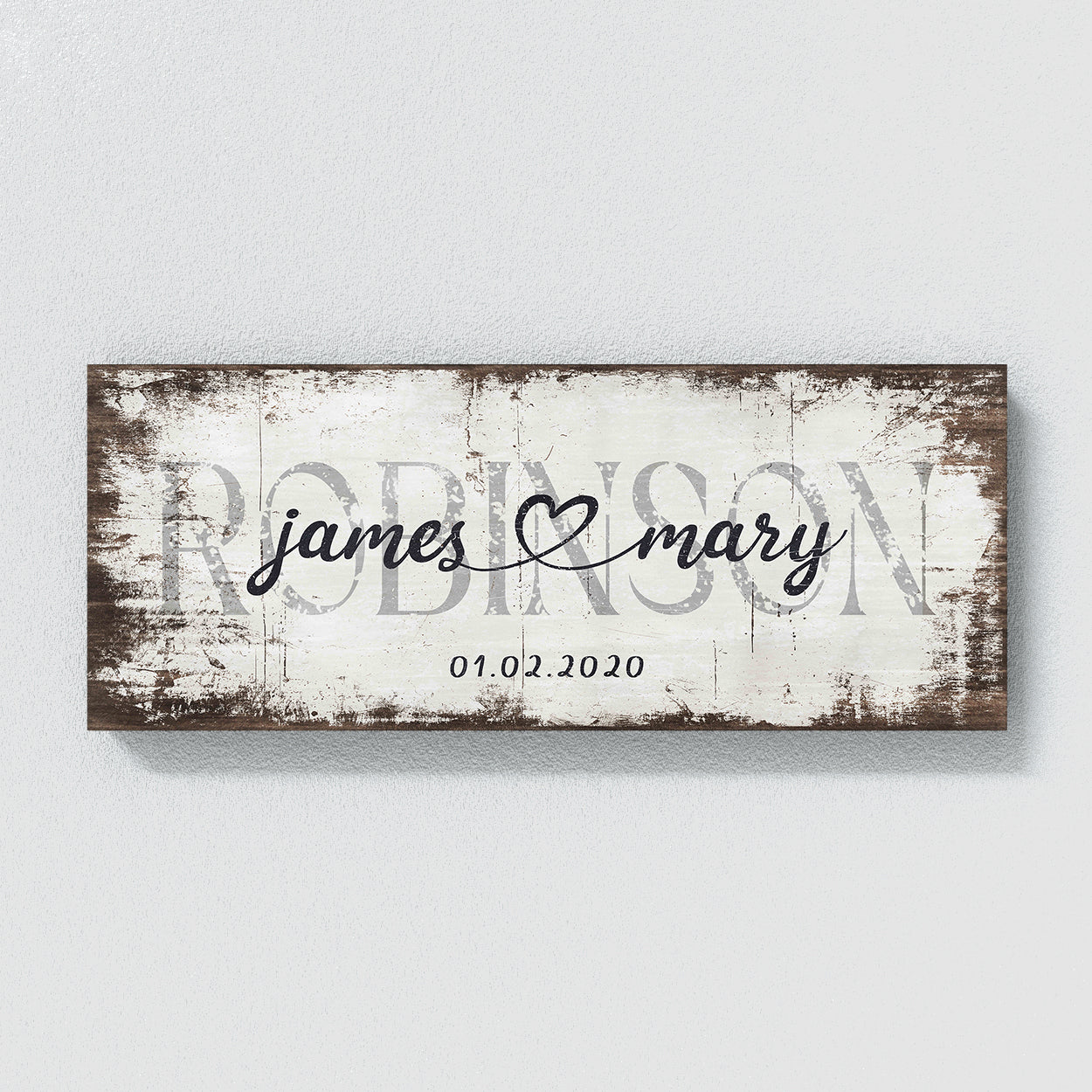 Wedding Family Name White Wood Grunge Wall Art